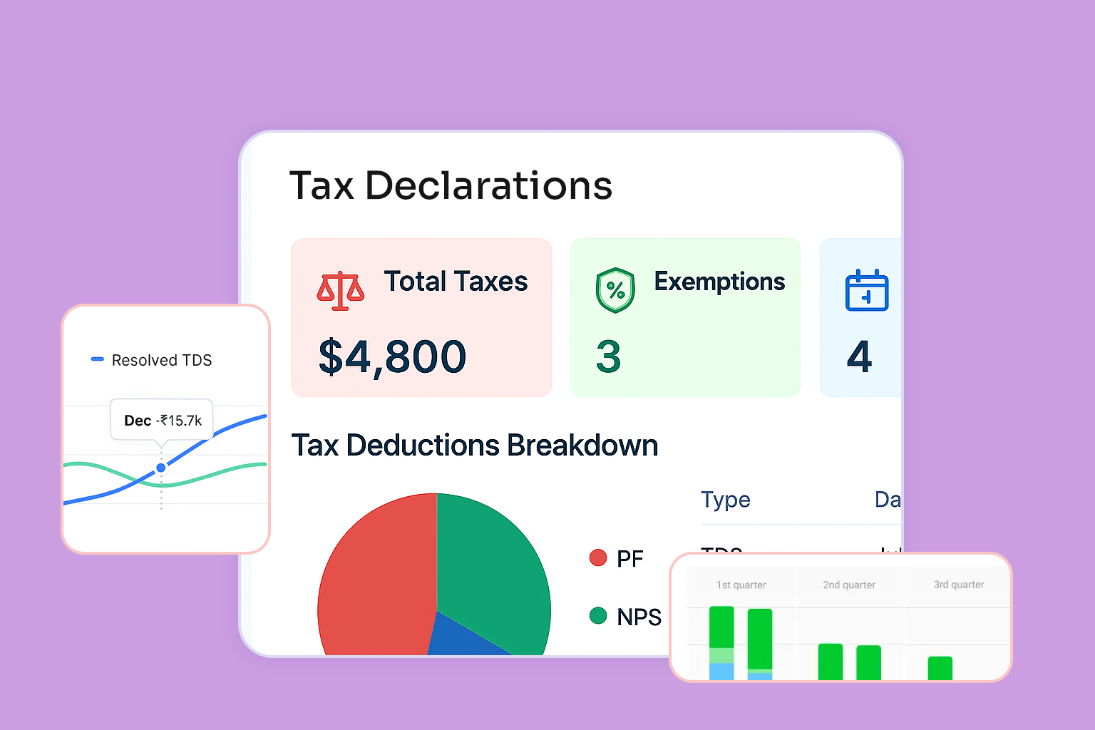 The built-in tax planner guides employees in making informed investment declarations. It helps them optimize tax savings across the financial year, while ensuring compliance and reducing last-minute stress