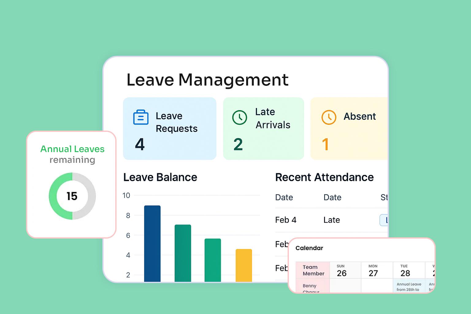 Employees can independently apply for leave, log attendance, and track approvals without depending on HR. Managers get a clear view of availability, improving workforce planning and reducing scheduling conflicts.